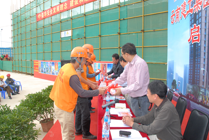 技術(shù)支持: 方森科技 2010年8月25日上午,集團(tuán)公司在五公司第一直管部承建的第三城•丹槿園施工現(xiàn)場(chǎng)召開施工現(xiàn)場(chǎng)班組安全建設(shè)啟動(dòng)儀式現(xiàn)場(chǎng)會(huì)。昆明市建筑安全監(jiān)督管理站站長(zhǎng)梁少軍,集團(tuán)公司副總經(jīng)理?xiàng)顫?、安全總監(jiān)段益慶、生產(chǎn)安全處主任蘇雄斌,五公司董事長(zhǎng)、黨委書記楊福和出席會(huì)議。會(huì)議由段益慶主持。